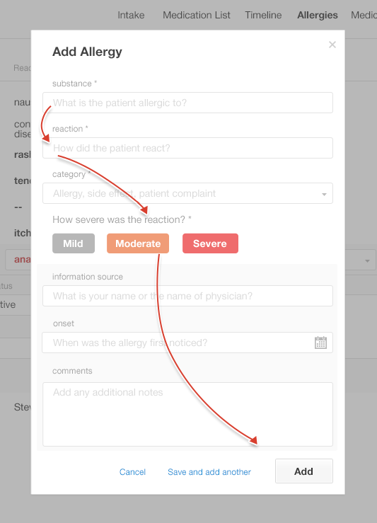 Compare two examples of ways to add new allergies to lists below (Gallery 4.1):