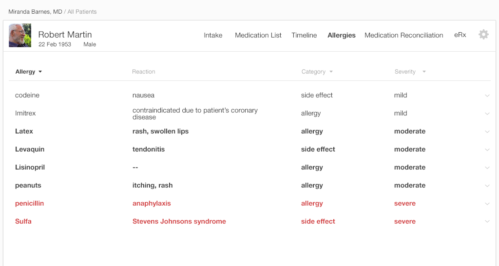 Streamline data entry and create clear, uncluttered displays to highlight important allergies.