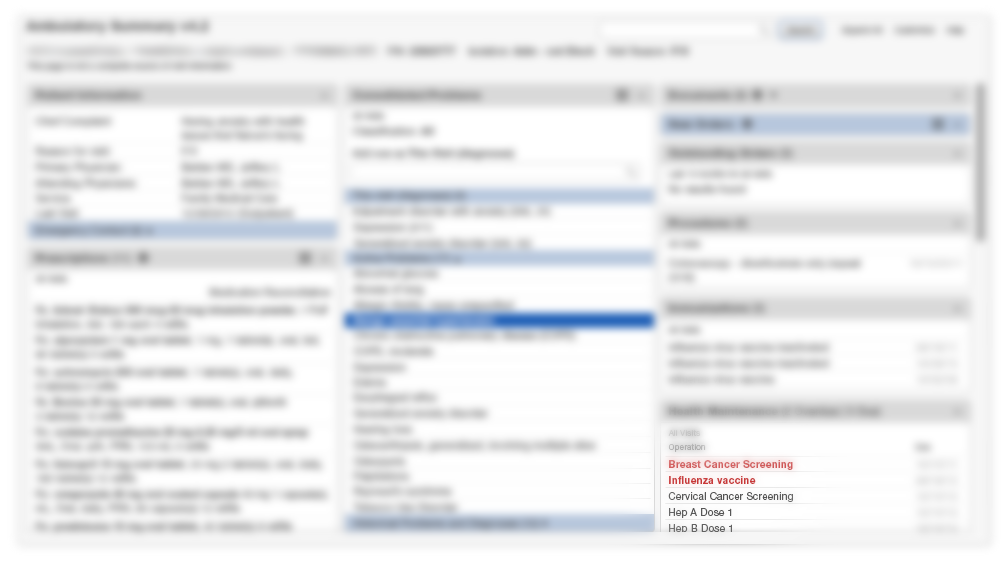 It's difficult to design EHRs that can improve users' situational awareness, however, because the information users need varies depending on both the user and the task at hand. What's important for the user to know about one patient may not be important for them to know about another. Yet despite the situation's complexity, designers can meet this challenge. If a patient has a chronic disease such as diabetes or hypertension, an interface can help users quickly assess and manage these conditions. The interface need never force users to stop, for example, writing up an e-prescription to go look for the lab result they need in order to calculate a proper dose. Designers need to strike a balance between giving users lots of information to boost their situational awareness, and overwhelming them (see information overload).