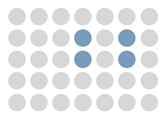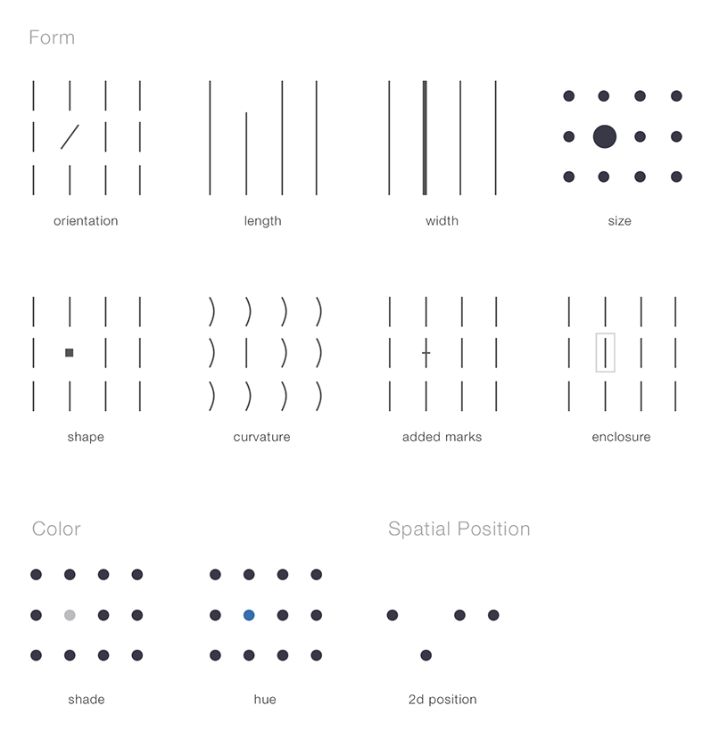 We notice some visual features, such as color, size, shape, orientation, and motion, more quickly than others. We call the things that especially stand out to us preattentive attributes. Before we fully process visual information, our minds prompt us to focus on these attributes. Things that stand out from the rest of their environment, as in Figure 7.20 below, do so because of their attention-catching preattentive attributes.