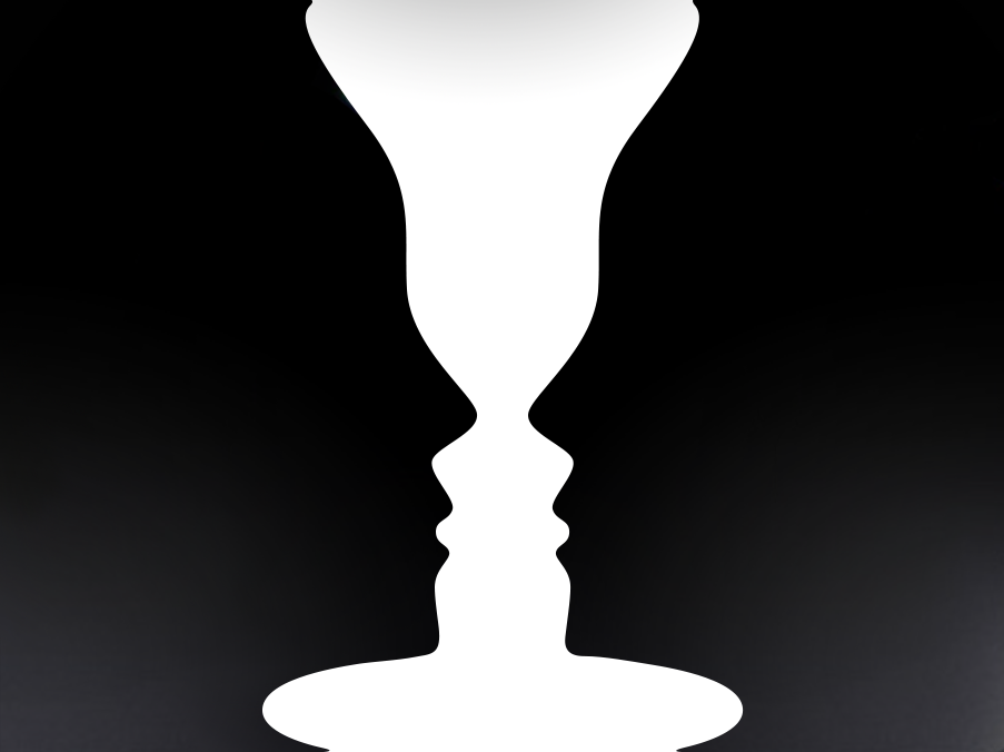Example: Figure 7.17 below is the classic Edgar Rubin image in which viewers see either two faces or a vase, depending on where they focus their attention. Rubin was a practitioner of gestalt psychology.