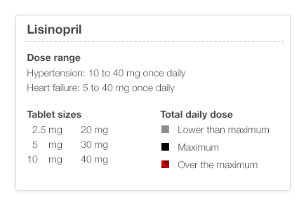 Make dose range information available with a click or a tap by linking the medication name to reference information about that medication. Drug product information databases include information about the recommended dose range for each indication or diagnosis. The maximum dose might be higher for heart failure than it is for hypertension.